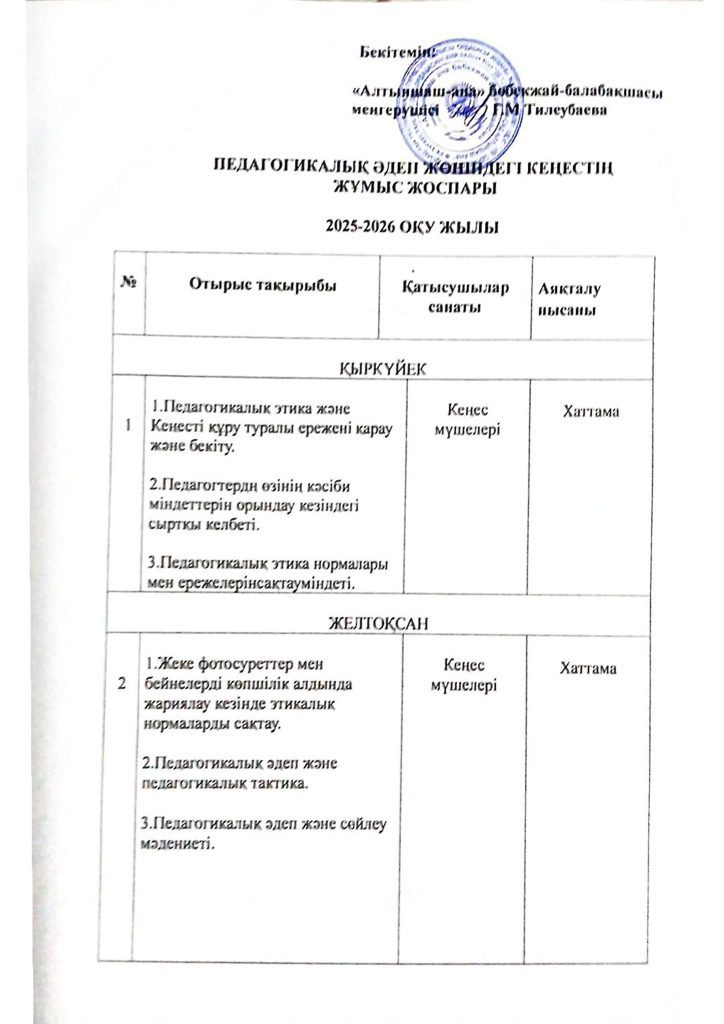 КҮН ТӘРТІБІ, ОҚУ ІС-ӘРЕКЕТ КЕСТЕСІ