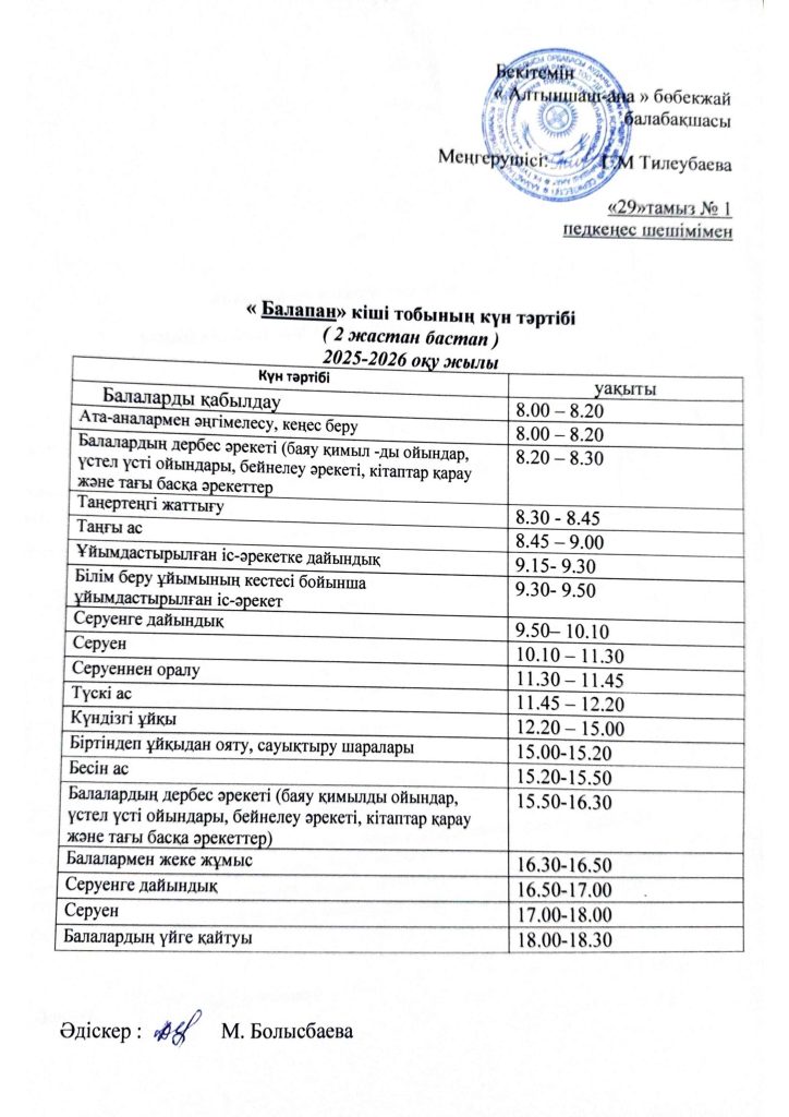 БАЛАНЫҢ БАЛАБАҚШАҒА БЕЙІМДЕЛУІ