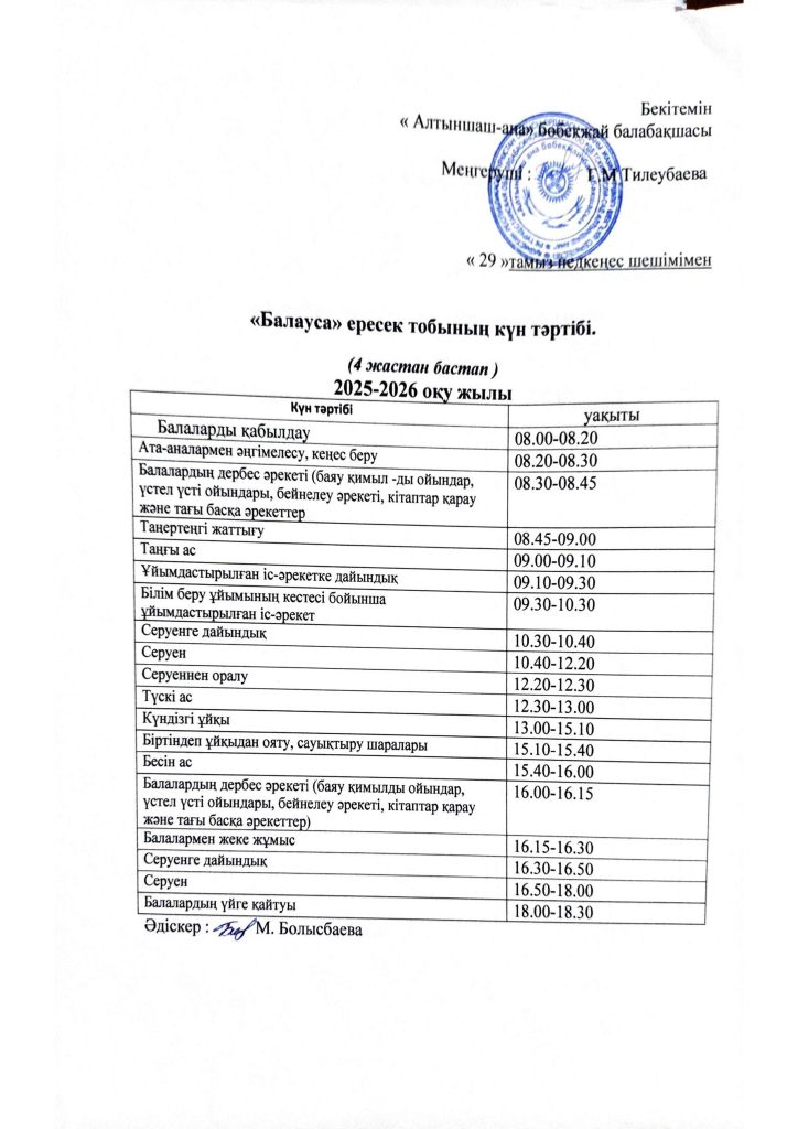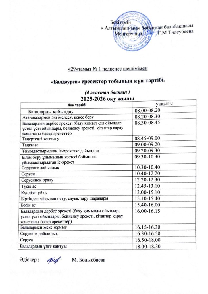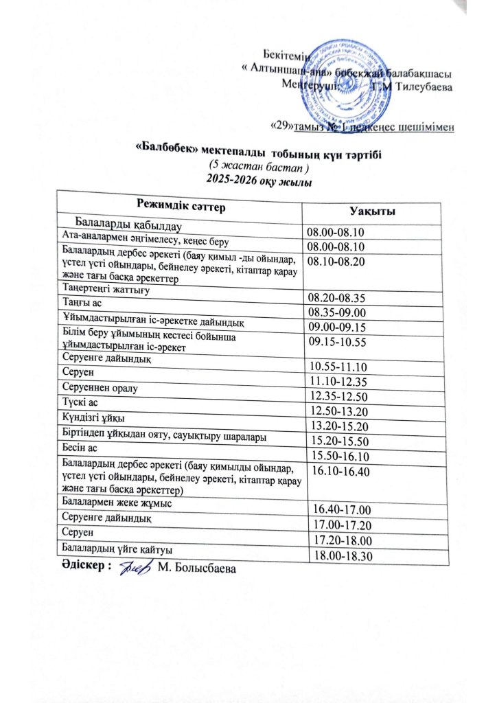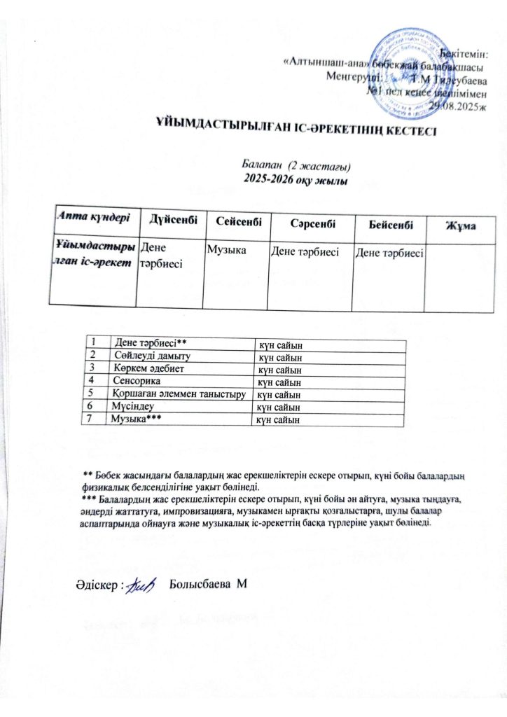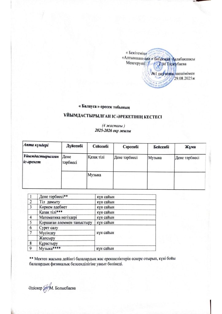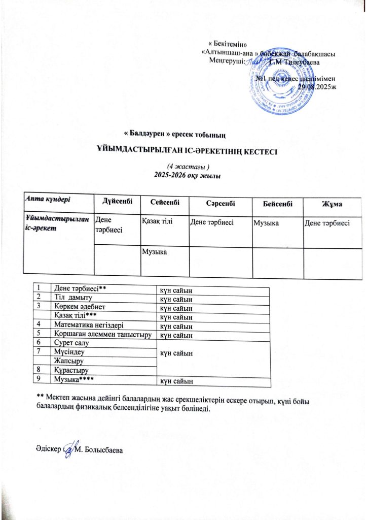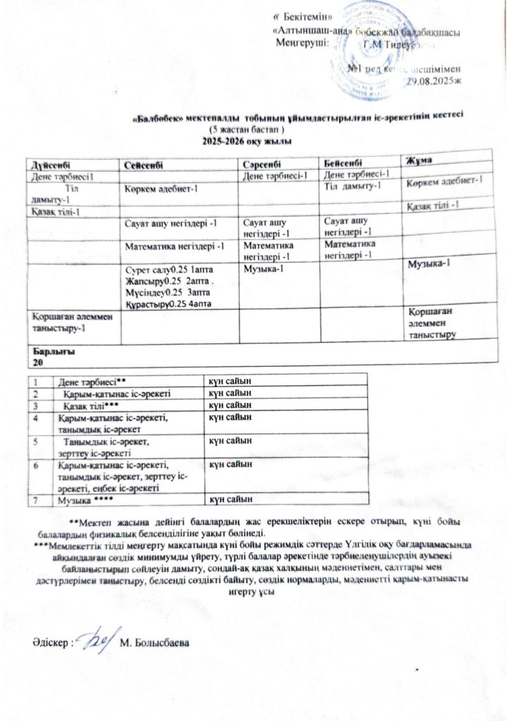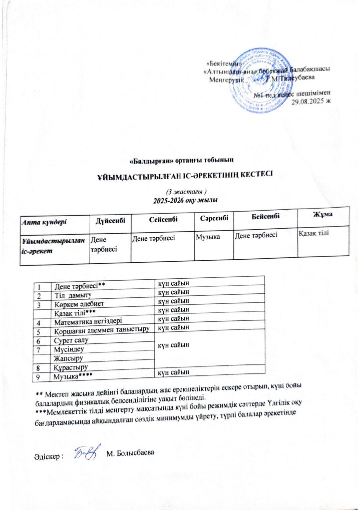 КҮН ТӘРТІБІ, ОҚУ ІС-ӘРЕКЕТ КЕСТЕСІ