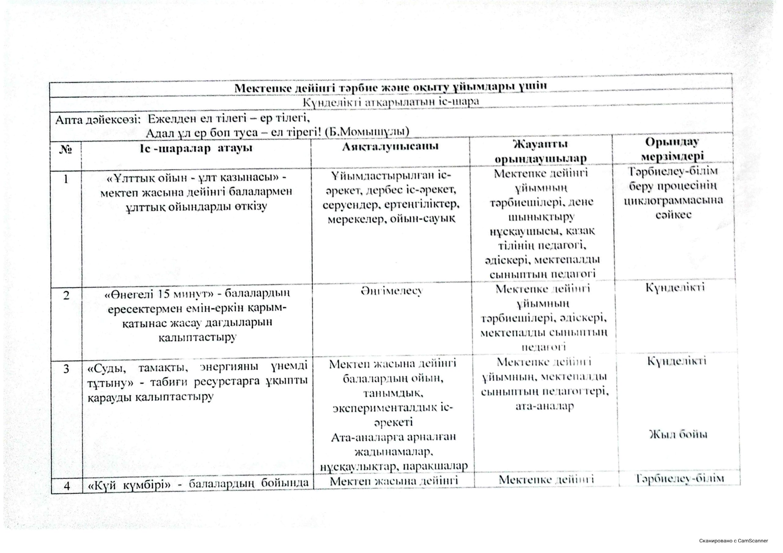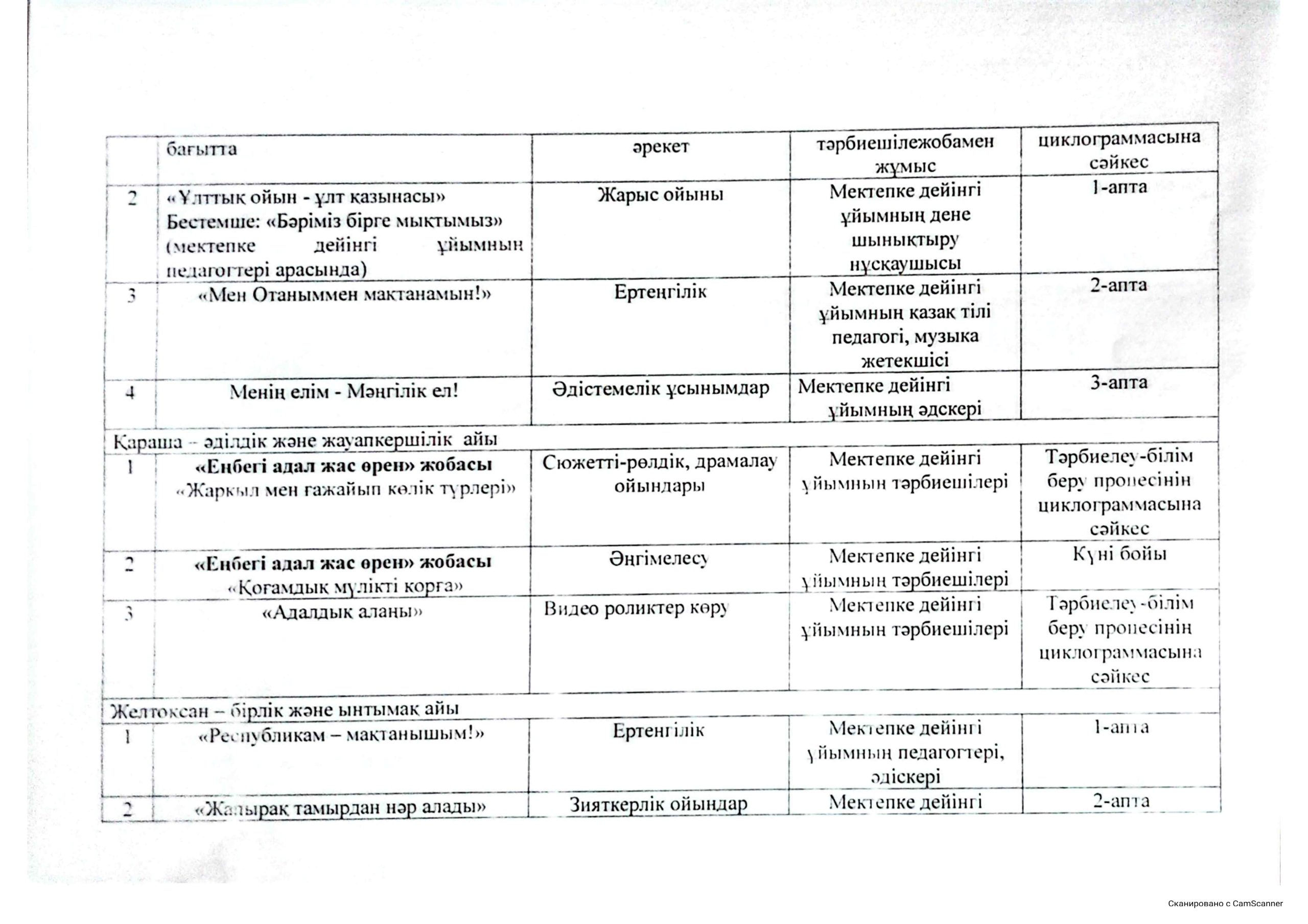 «БІРТҰТАС ТӘРБИЕ» БАҒДАРЛАМАСЫ ІС-ШАРАЛАРЫ