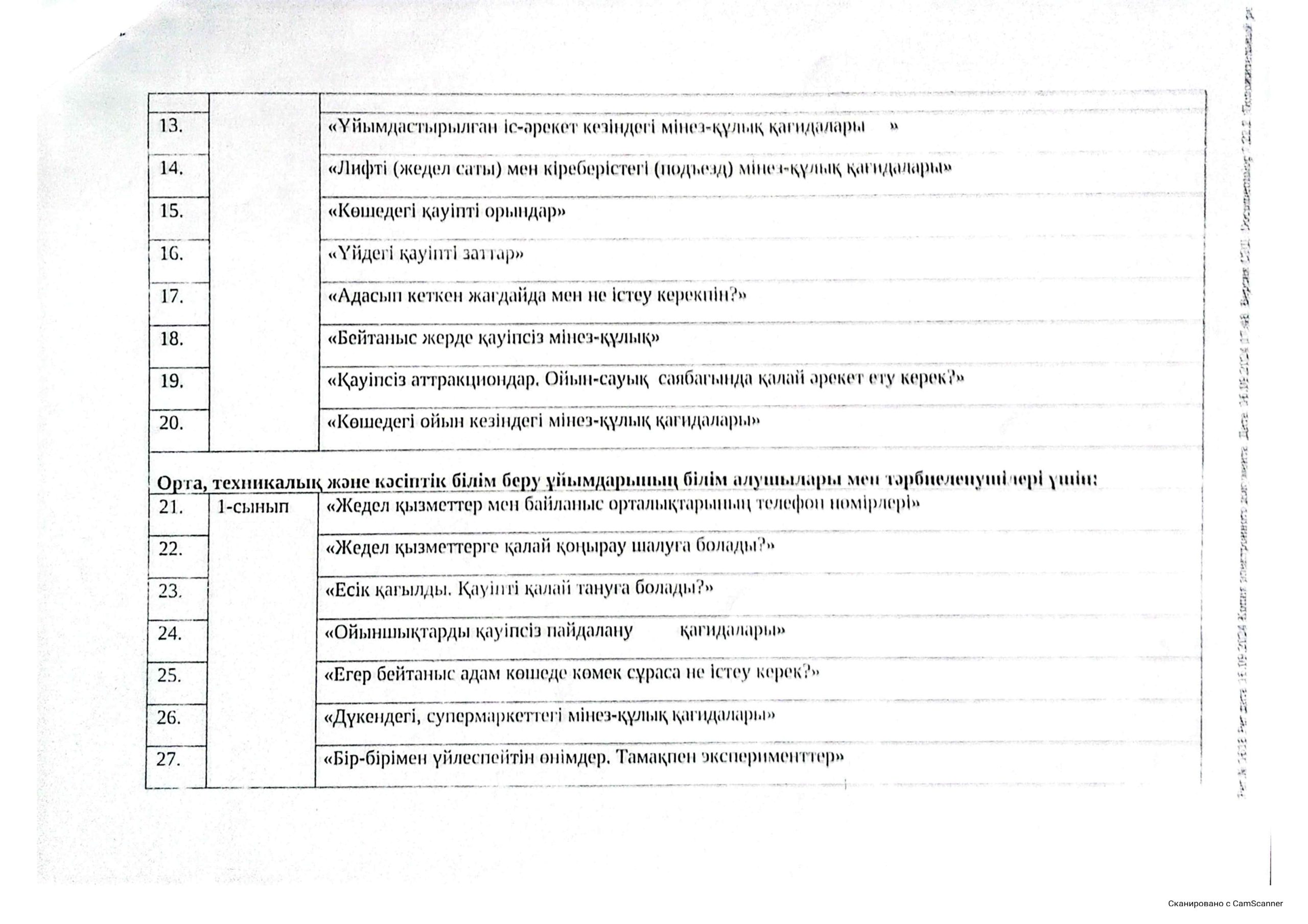 КҮН ТӘРТІБІ, ОҚУ ІС-ӘРЕКЕТ КЕСТЕСІ